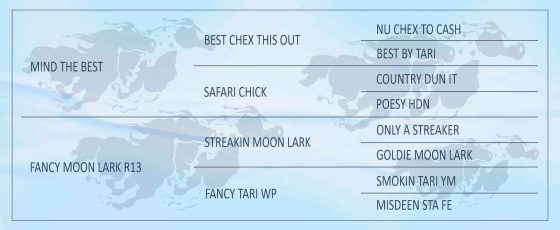 2ª Mãe – FANCY TARI WP: Matriz produtora em Três Tambores. Possui atualmente 12 filhos registrados pela ABQM e dois deles são pontuados, totalizando 6,5 pts. Filha de SMOKIN TARI YM, garanhão produtor em diversas modalidades, sendo 66,99% em Três tambores, 17,40% em Seis Balizas, 10,41% em rédeas, entre outras como, laço em dupla, vaquejada, laço cabeça e laço pé, totalizando 307,5 pts.