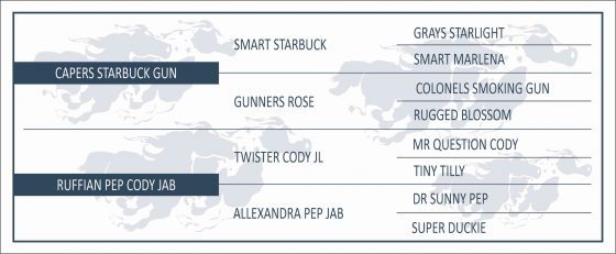 SMART STARBUCK: Um dos melhores reprodutores de rédeas a vir para o brasil em todos os tempos. Produtor de campeão mundial em laço pela AQHA. Um dos melhores como avô materno de rédeas na atualidade no mundo. Ganhador de U$60.045,00 em Rédeas, possui títulos como: Campeão do NRBC USET Qualifier. Campeão do Eastern Affiliate Open Championship. 3º lugar no NRHA Open Derby/99. 5º lugar no NRBC Open Derby/99. 6º lugar no NRHA Open Derby/00. 7º lugar no Congress Reining Open Futurity/98. Finalista do NRHA Open Futurity/98, etc. Produtor de mais de U$1.830.000,00 em Rédeas. Entre os 20 melhores reprodutores de Rédeas em todos os tempos. Em 2015 produziu ZENJI BENZ, Campeã Mundial AQHA em Laço Cabeça (Amador Nível 2).