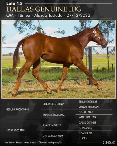 Pai – GENUINE POCODO DHL: Garanhão Palomino, filho de GENUINE RED QUINCY, em um mãe UBALENA POCODO SZ.