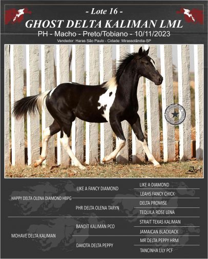 JAMAICAN BLACKJACK : Por Spooks Royal Crown. Garanhão Paint Horse com campanha no Canadá, tendo acumulado 416 pontos pela PtHA, sendo PtHA Champion e obtendo Registro de Mérito em Western Pleasure, Trail e Halter, além de ter obtido pontos em Rédeas e WCH. Exportado para a Alemanha. Filho de SPOOKS ROYAL CROWN, garanhão produtor em Trabalho e Conformação pela APHA. Sua mãe, MISS BLACK ROSE, possui pedigree fechado em Trabalho.