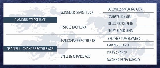 STARSTRUCK GIRL: ganhadora de U$ 36.830,00, foi Res Campeã NRHA Non Pro Derby, finalista NRHA Non Pro Futurity, 3º.L High Roller Non Pro Derby. Mãe dos grandes garanhões: GUNNER IS STARSTRUCK: reprodutor já comprovado; CRACKERWHIZTRUCK: já possui 25 pts ABQM e ganhos de R$ 27.500,00 pela ANCR. 1°L 39° Potro do Futuro da Raça Quarto de Milha – Rédeas Potro do Futuro – Aberta – Livre; 1°L Super Stakes ANCR 2018 – Rédeas – Aberta – Livre; 2°L 39° Potro do Futuro da Raça Quarto de Milha – Rédeas Potro do Futuro – Amador – 19 anos ou mais; 2°L Potro Do Futuro ANCR 2018 – Rédeas – Aberta – Livre.