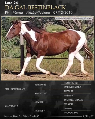 Pai – TM B LINESBESTINBLACK: Importado. Homozigoto. Linhagem de Trabalho. No Brasil, em sua primeira geração destaque para: SHOWHORSE INBLACK TH (Grande camp. V Congresso ABCPaint/04 Conformação Ab, Res. grande campeão V Congresso ABCPaint/04 – Amador, 1º Lugar II Etapa IX Campeonato Nacional ABCPaint/04 – Aberta e Amador, 1º Lugar IV Etapa do IV Campeonato Nacional ANC Paint/04 Aberta e Amador, 2º Lugar V Etapa IX Campeonato Nacional ABCPaint/04 – Aberta e Anador). SAMIRA JET INBLACK HSEL, Campeã Nacional ABCPAINT TEAM PENNING AM E AM MASTER, Campeã Nacional 3 TAMBORES AM PR, RES Campeã Nacional TEAM PENNING AB, 3 TAMBORES AM ETC. Possui Vários 1º lugares em 3 Tambores Em Provas Regionais.