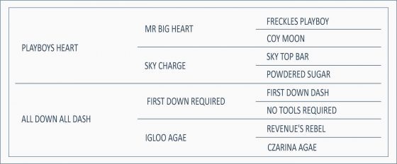Pai – PLAYBOYS HEART, Importado. Único neto homozigoto do lendário garanhão americano de Apartação, FRECKLES PLAYBOY. Produtor de: HEART SANADOC HSA, Campeão Nacional ABC Paint/17 em Três Tambores (Test Horse), etc.; FLY HEART TY AFFAIR, Campeã Nacional ABC Paint/17 em Conformação (Aberta-Fêmeas-1 ano), etc. Seu pai, MR BIG HEART, é ganhador de U$37.000,00 em Apartação, sendo Campeão do Abilene Spectacular 5/6YO Amateur, Campeão do Memphis Amateur Futurity, Campeão do Southern Cutting Amateur Futurity, Campeão do Margarita Classic, Res.Campeão do Campeonato Mundial APHA Futurity em Apartação e produtor de Campeões em Trabalho pela APHA. Seu avô paterno, FRECKLES PLAYBOY, é ganhador de U$59.976,00. Res.Campeão NCHA Futurity, Campeão Mundial AQHA de Apartação e 4º melhor reprodutor de Apartação em todos os tempos pela NCHA com +U$28.750.000,00 em produção.